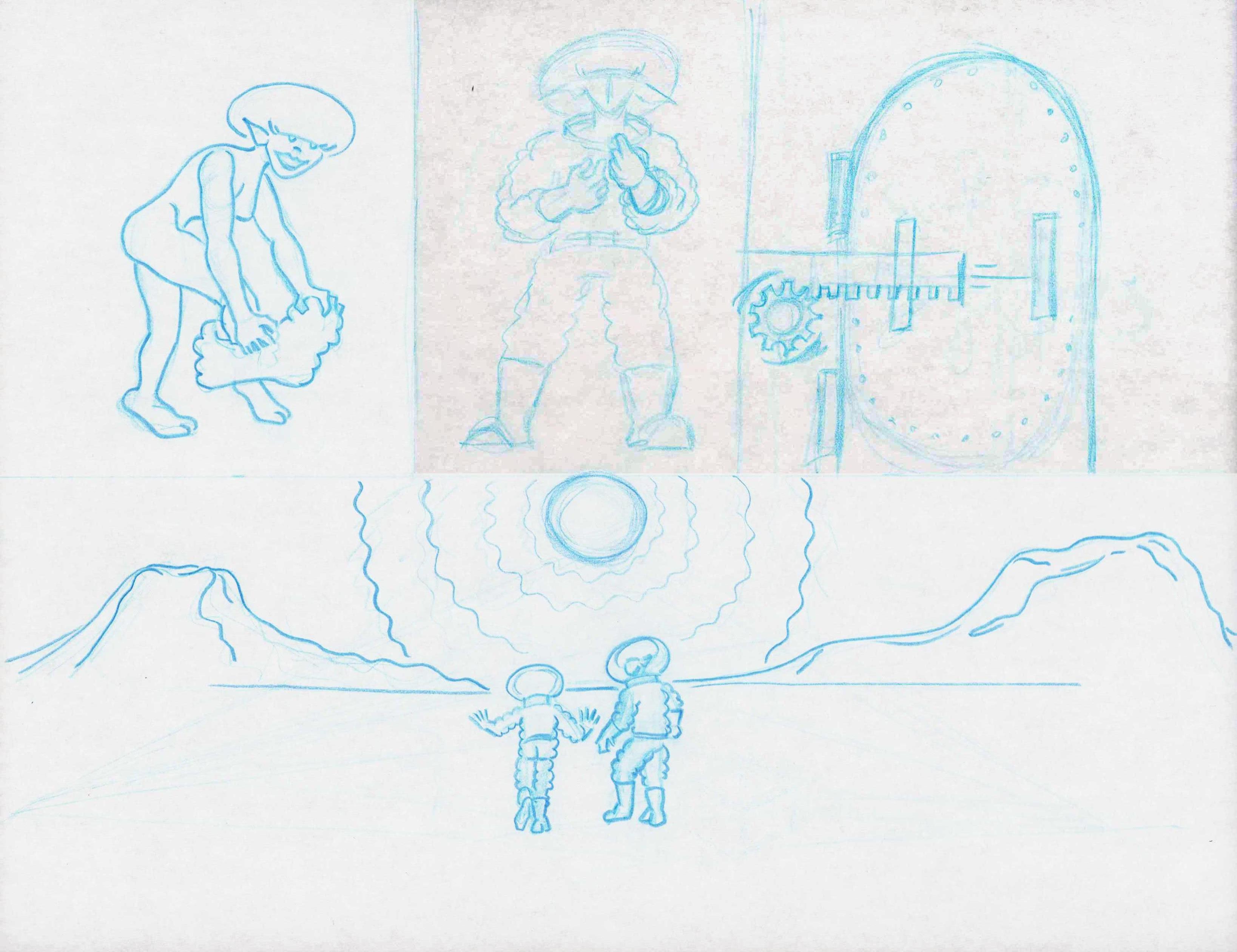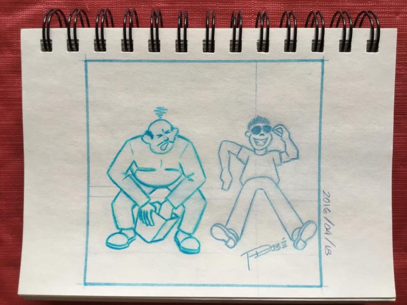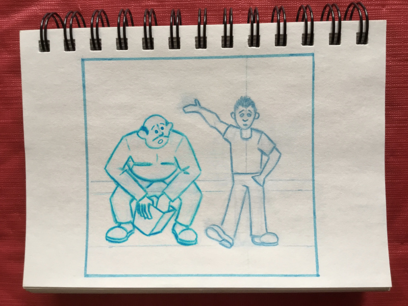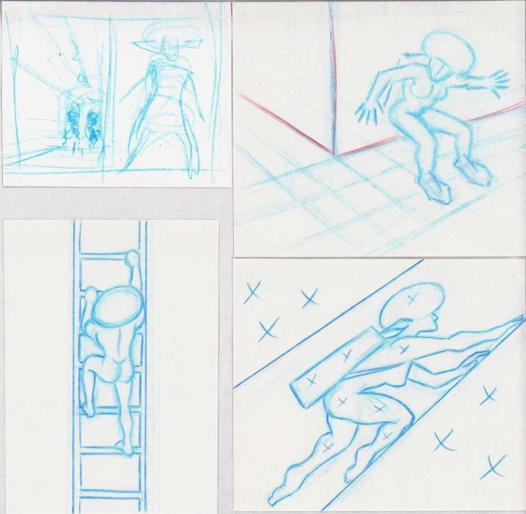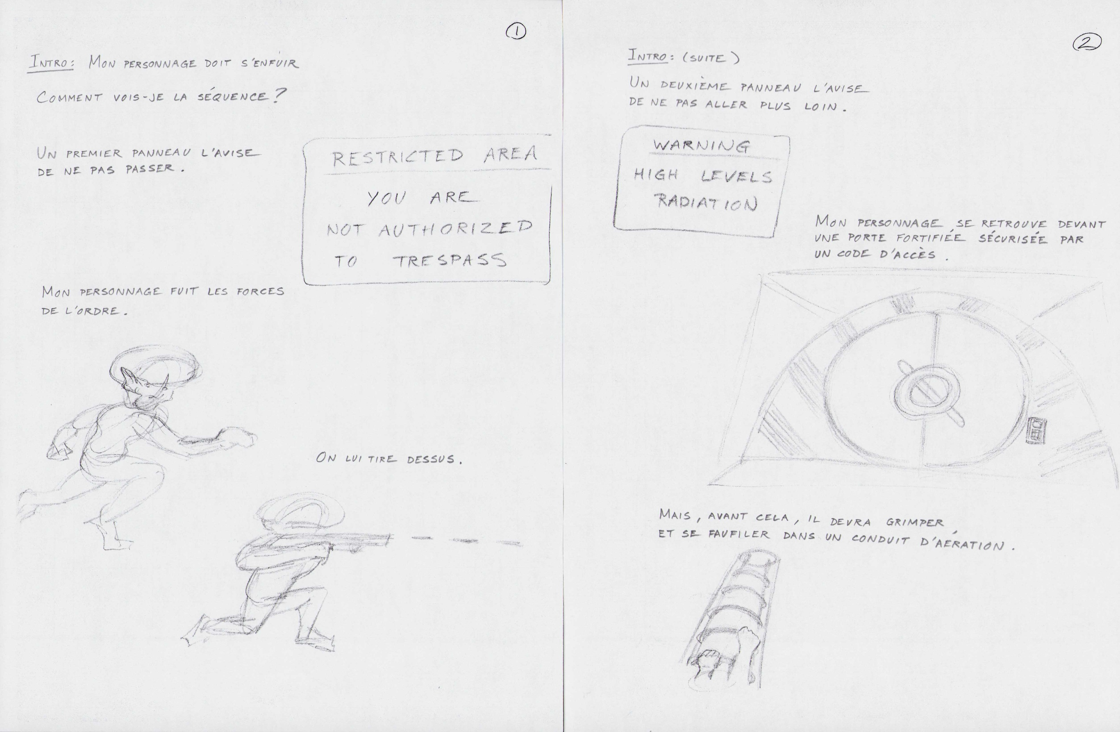 À ce stade de la conception, je dessine les cases de manière aléatoire. Lorsque j'ai suffisamment de matériel, je les mets en ordre pour obtenir une histoire cohérente.
