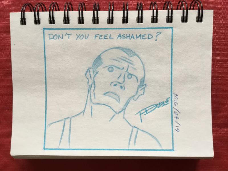 Pour sauver du temps, le personnage de gauche dans les cases 2 et 3 a été calqué de l’image 1 en changeant seulement l’expression de son visage.